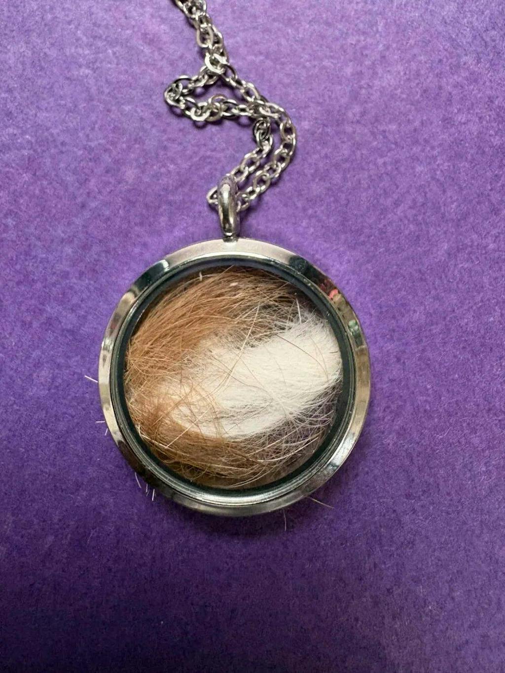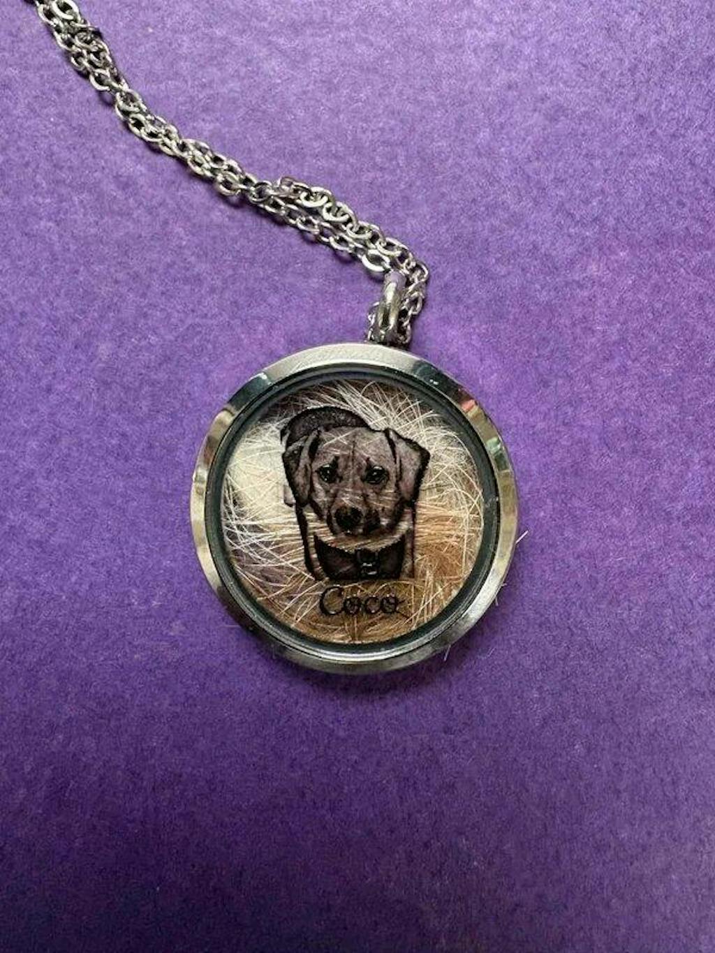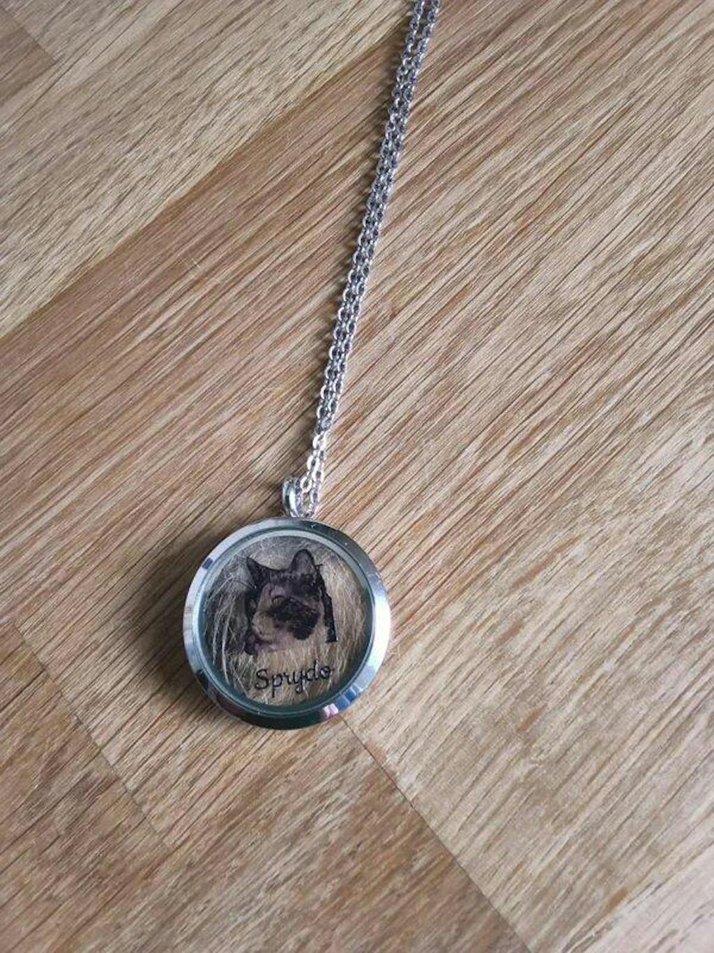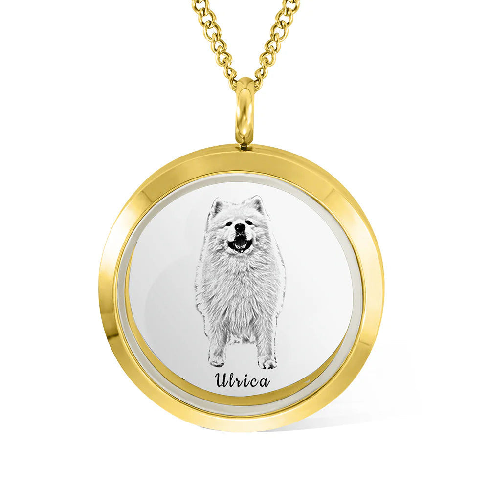 Haustier Gedenkschmuck: Personalisierte Kette mit Haustier-PortrĂ€t und Fach fĂŒr Fell