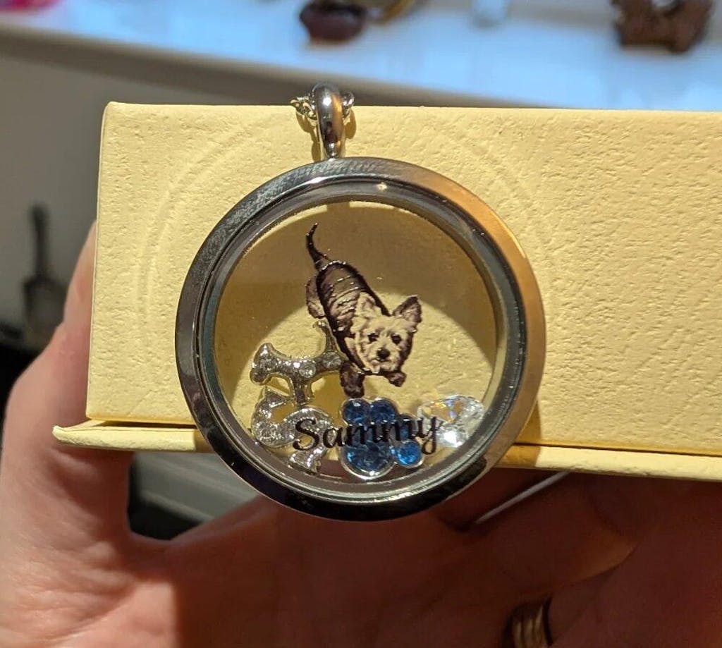 Die Halskette hat eine sehr gute QualitĂ€t und der AnhĂ€nger lĂ€sst sich fest zuschrauben. Der Aufdruck von meiner Coco ist sauber und scharf â jedes Mal, wenn ich ihn ansehe, kommen mir die TrĂ€nen.